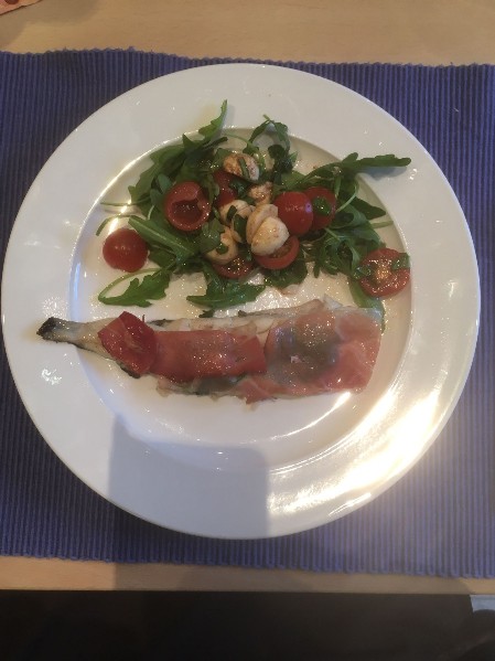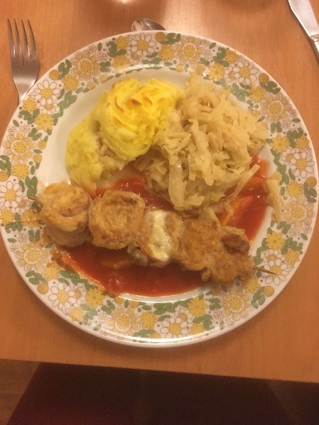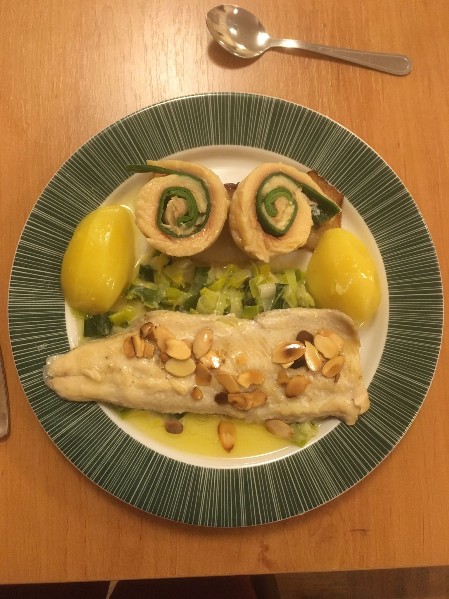 dazu Lebkuchenspätzle und Mandel-Grünkohl